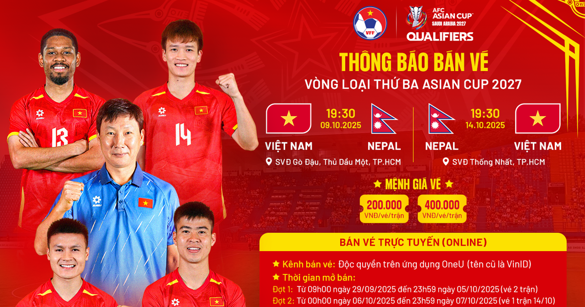 Le Comité d’organisation (CO) vient d’annoncer le plan d’émission de billets pour deux matches entre l’équipe vietnamienne et l’équipe népalaise lors du dernier tour de qualification de la Coupe d’Asie 2027, qui se déroulera en octobre prochain au stade Binh Duong et au stade Thong Nhat.