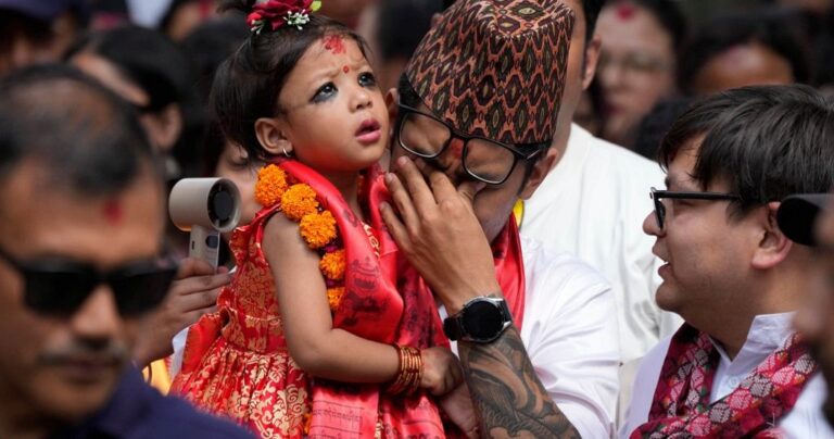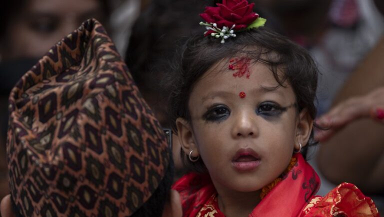 La petite fille a accédé ce mardi au statut de Kumari, à Katmandou, et devient, selon les traditions hindoues et...